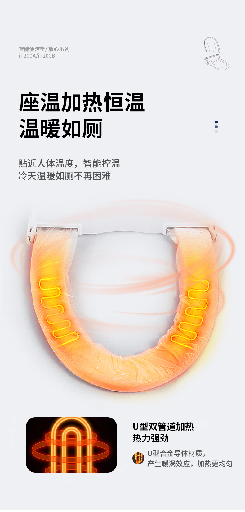 恒溫座圈:室內(nèi)環(huán)境溫度低于18℃,自動開啟加熱功能至32℃-36℃后恒溫。